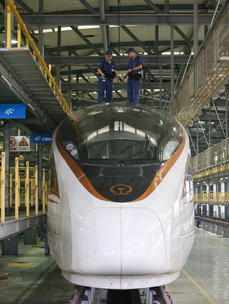 “復興號”是我國具有完全自主知識產權、達到世界先進水平的中國標準動車組。350公里時速的正式運營,標志著我國成為世界高鐵商業運營速度最高的國家。國慶期間,在上海動車段虹橋動車運用所,“復興號”的幕后英雄們堅守一線,確保旅客出行安全。
