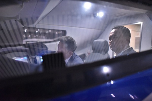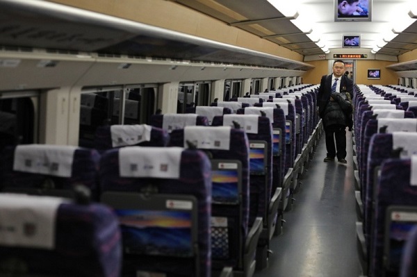 陳輝從DJ8841次動車組內經過。