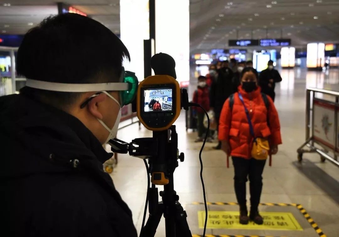 1月31日,天津西站客運人員對進出站旅客進行體溫檢測,做到一個不漏。中國鐵路北京局集團公司 楊寶森 攝
