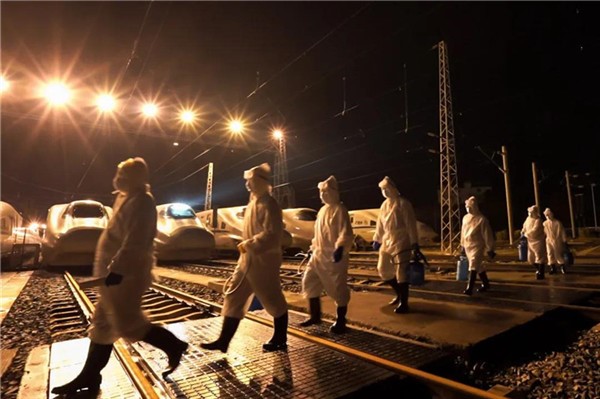 為了完成繁重的站車消毒任務,17年前參與抗擊非典的中國鐵路北京局集團公司北京鐵路疾病預防醫學研究中心的王鐵燕,再次身披“戰甲”,帶領23個姐妹組成一支站車消毒“娘子軍”,每天奔忙在北京各大火車站;中國鐵路南昌局集團公司疾病控制所消殺科科長楊波,一直奮戰在單位26天沒有回家;中國鐵路沈陽局集團公司沈陽車輛段集便器維修工蔣明軼主動申請擔當廣州、成都、昆明等方向的客車集便器維修任務,常常在車廂底部一干就是五六個小時。