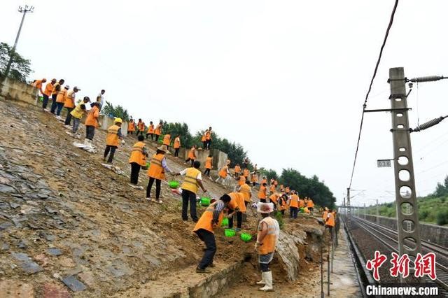 入汛以來,最強(qiáng)降雨給鐵路防洪安全帶來強(qiáng)大的挑戰(zhàn),由于遭受近期持續(xù)降雨侵襲和水流沖刷,導(dǎo)致中國(guó)鐵路鄭州局集團(tuán)有限公司南陽工務(wù)段管內(nèi)寧西鐵路線防洪點(diǎn)出現(xiàn)塹坡溜塌現(xiàn)象。為防止泥石流水害侵入線路,連日來,該段迅速啟動(dòng)防洪搶險(xiǎn)應(yīng)急預(yù)案,組織70余名搶險(xiǎn)人員緊急趕赴現(xiàn)場(chǎng),對(duì)寧西線K354+200處的一百多米坡體進(jìn)行水害整治,通過清理泥土石塊、堆碼沙袋加固等方式對(duì)隱患處所進(jìn)行處置,使水害得到有效控制,全力保障惡劣天氣下列車的運(yùn)行安全。