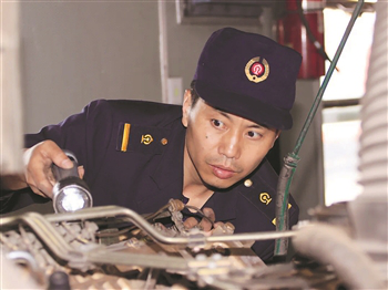 田偉明在檢查柴油發電機組高壓油泵工作狀態。強科 攝