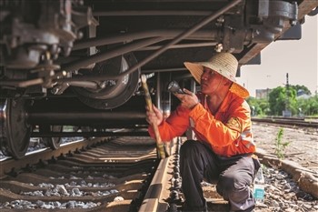 暑運期間,持續高溫天氣相繼在我國大部分地區出現。各行各業堅守崗位的勞動者中,不乏鐵路職工的身影。炎炎烈日下,有腳踏熱浪、穿梭在股道間的調車員,有與焊花、烈焰相伴的鋼軌焊接工,有步履不停、為列車注入清泉的上水工,有在“桑拿房”里檢修維護的車載信號工,有頭頂烈日、守護車輛運行安全的檢車員……萬里鐵道線上,廣大干部職工不懼驕陽、不畏熱浪、揮汗如雨,在設備檢修、線路維護、站車服務等一線崗位拼搏奉獻,保證鋼鐵大動脈的安全暢通。