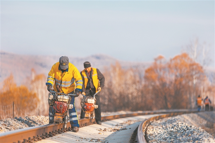 日前,東北大部迎來強降溫天氣。鐵路部門積極做好設備檢修和隱患排查工作,全面提升設備質量,確保低溫條件下行車安全。圖為近日,中國鐵路哈爾濱局集團公司海拉爾工務段圖里河線路車間職工在牙林線進行應力放散施工。