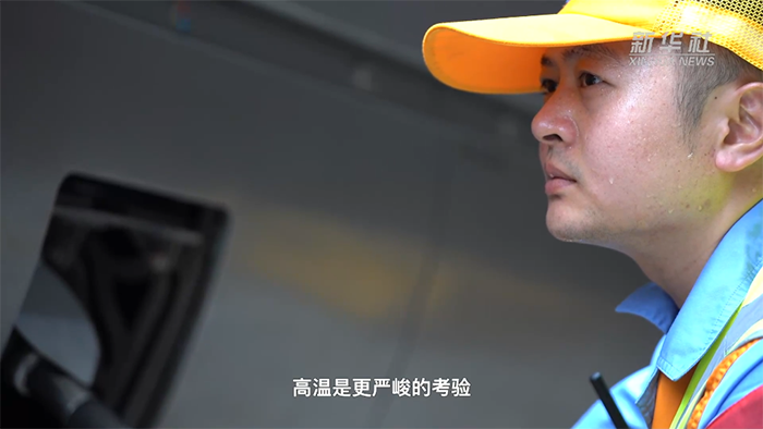 上水工的工作首先難在搶時(shí)間。列車(chē)停靠時(shí)間短暫,每節(jié)車(chē)廂都得完成注水。在車(chē)站400多米長(zhǎng)的股道區(qū)域,上水工每天要走2萬(wàn)多步,為列車(chē)進(jìn)行水源供應(yīng)。除安全作業(yè)外,高溫是更嚴(yán)峻的考驗(yàn)。在50℃的鋼軌旁作業(yè)時(shí),不到10分鐘就全身濕透。