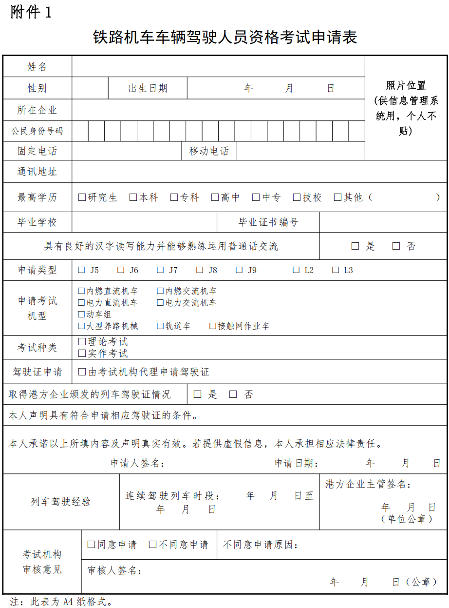 附件:1.鐵路機(jī)車車輛駕駛?cè)藛T資格考試申請表