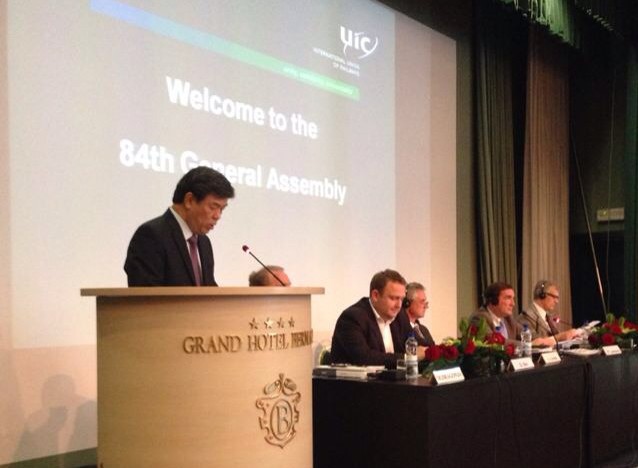 陸東福(左一)出席國際鐵路聯盟第84次全體大會并致辭