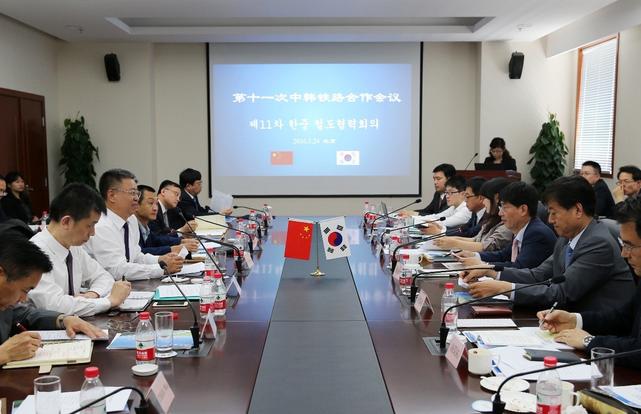 5月24日,國家鐵路局副局長于春孝與韓國國土交通部鐵道局長樸敏雨在京共同主持召開第十一次中韓鐵路合作工作會議。