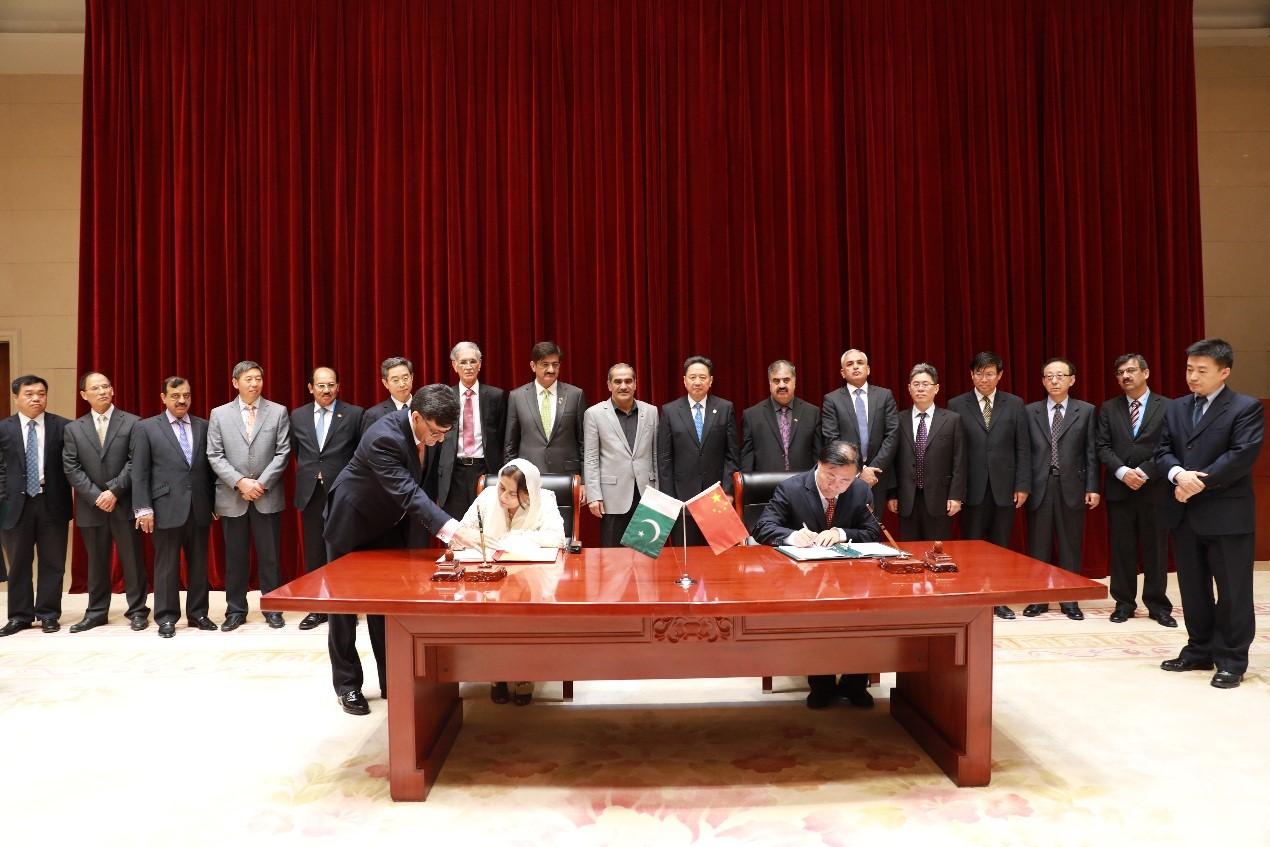 交通運輸部副部長、國家鐵路局局長楊宇棟與巴基斯坦鐵路委員會主席阿格哈簽署《中華人民共和國國家鐵路局與巴基斯坦伊斯蘭共和國鐵道部關于實施巴基斯坦1號鐵路干線升級改造和哈維連陸港項目建設的框架協議》。交通運輸部部長李小鵬和巴基斯坦鐵道部長拉菲克共同見證。