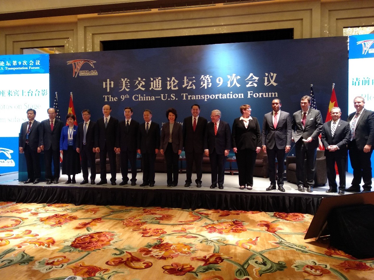 4月25日,國家鐵路局黨組成員鄭健(左五)在北京參加了中美交通論壇第九次會議。會議由全國政協副主席、交通運輸部黨組書記楊傳堂與美國運輸部長趙小蘭共同主持。中美兩國政府和企業代表圍繞自動駕駛和基礎設施兩個主題廣泛進行了交流。