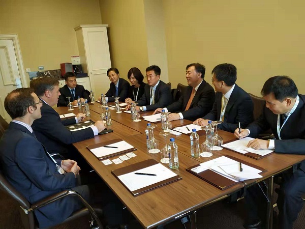 楊宇棟(右三)會見愛爾蘭鐵路監(jiān)管委員會主席布萊恩·黑吉森(左二)