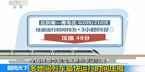 全國鐵路今起實(shí)施新列車運(yùn)行圖 多地間列車最快運(yùn)行時(shí)間壓縮