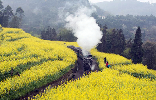 乘嘉陽小火車 開啟花海之旅(視頻)
