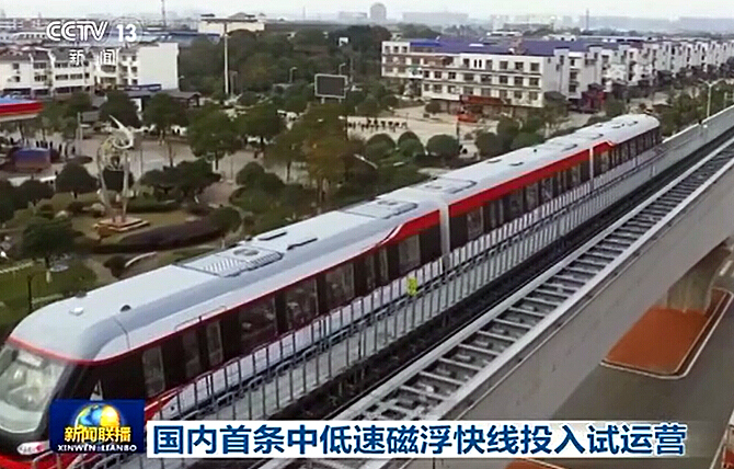 國內首條中低速磁浮快線投入試運營(視頻)