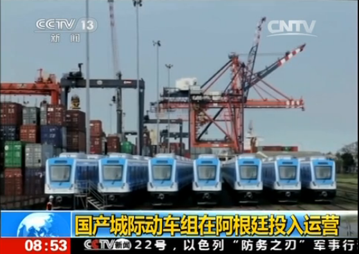 央視新聞頻道《朝聞天下》報道國產城際動車組在阿根廷投入運營