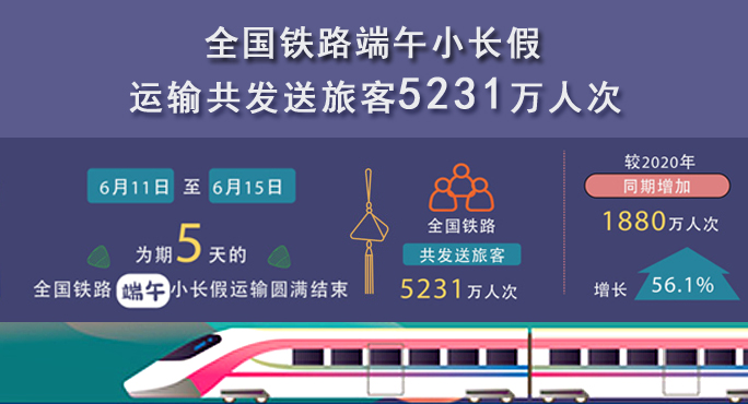全國鐵路端午小長假運輸共發送旅客5231萬人次