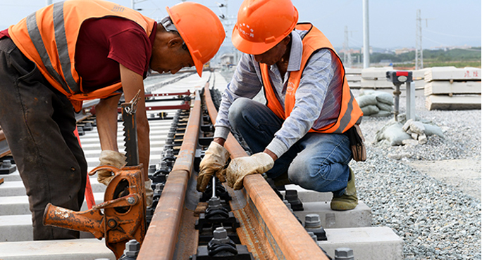 中老鐵路國內段鋪軌施工忙