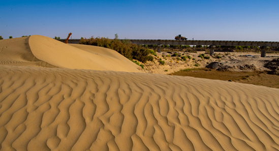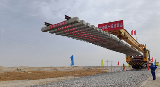 新疆和若鐵路工程進入塔克拉瑪干沙漠區段鋪軌