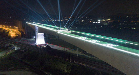 新建福廈鐵路西溪特大橋跨杭深鐵路轉體梁成功轉體