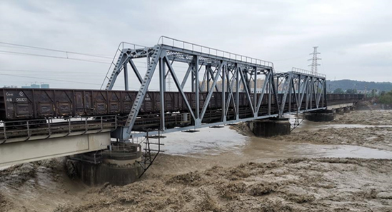 洪水襲擊寶成鐵路涪江大橋 超8100噸“重車(chē)壓梁”護(hù)橋