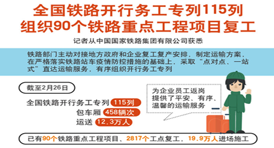 全國鐵路開行務工專列115列 組織90個鐵路重點工程項目復工