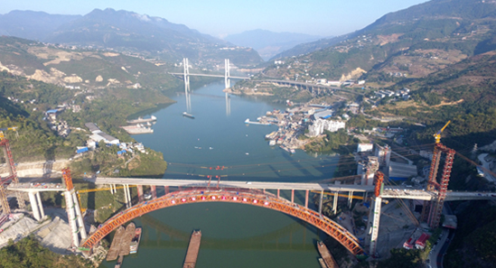 鄭萬高鐵梅溪河雙線特大橋主拱順利合龍