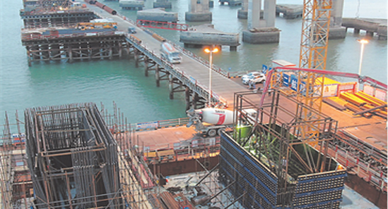新建福廈鐵路泉州灣跨海大橋主墩首節(jié)塔柱澆筑