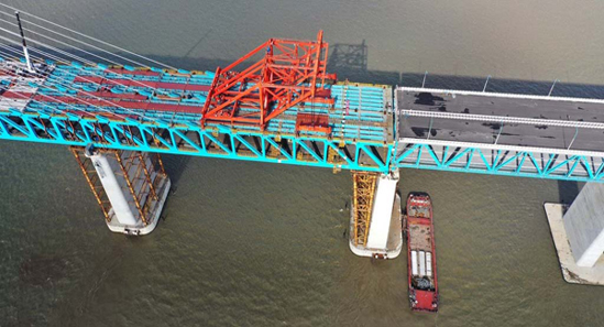 滬通長江大橋主航道首個邊跨鋼梁完成合龍