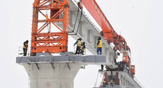 京張高鐵官廳水庫特大橋鋪軌