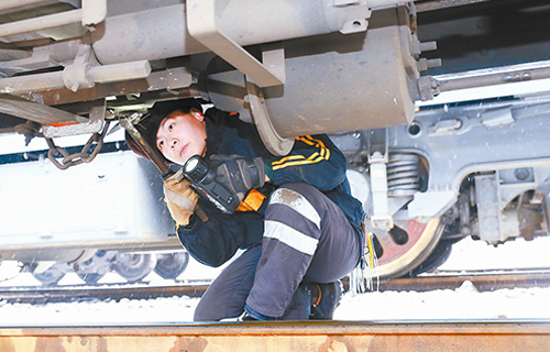 鐵路一線職工迎戰(zhàn)低溫風雪 確保冬季運輸安全