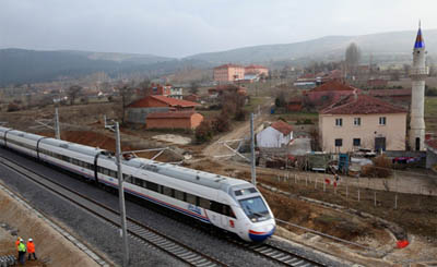 由中國鐵建總承包建設的土耳其安卡拉至伊斯坦布爾高速鐵路二...