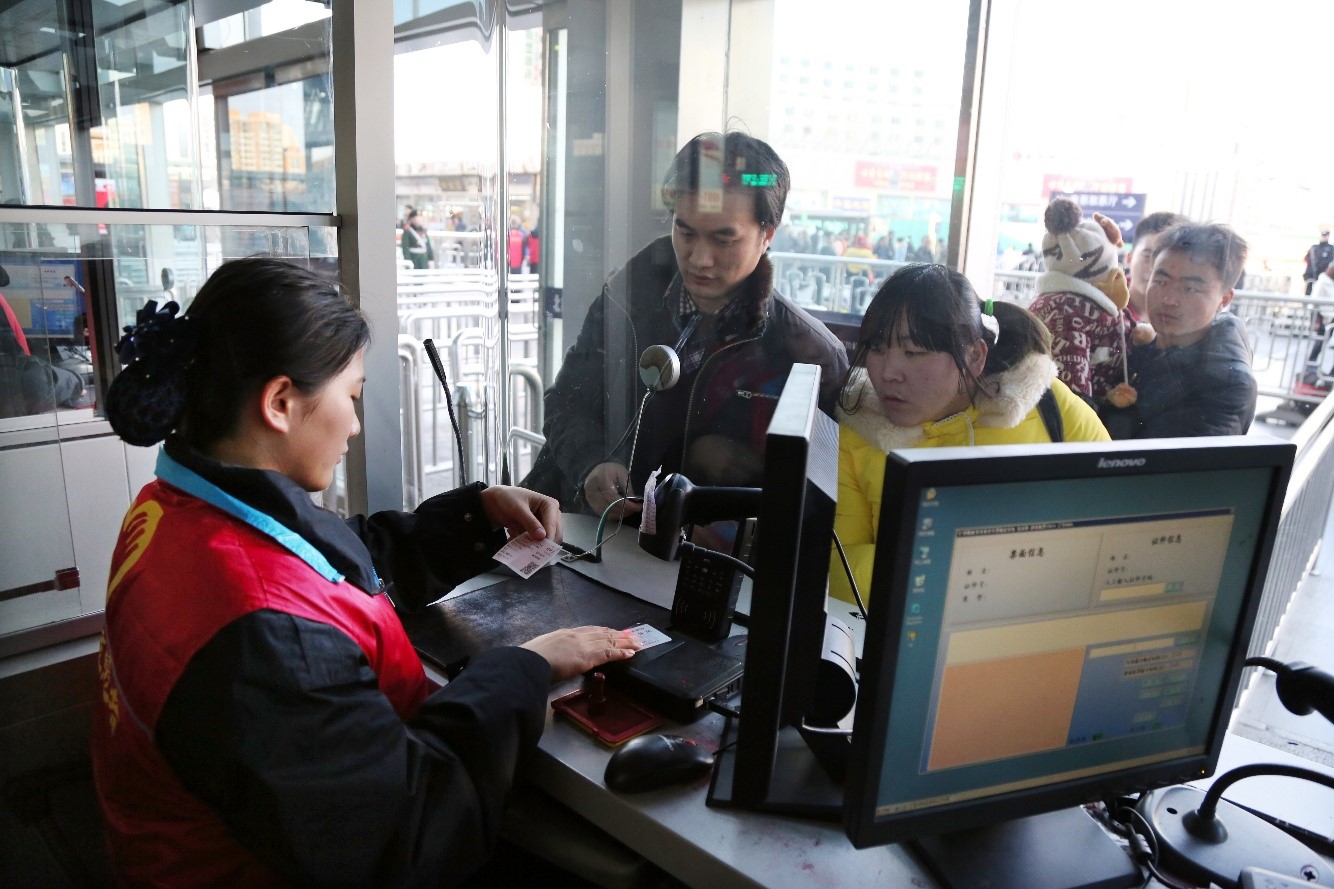 2月4日春運第一天,全國鐵路開行臨客117對,發送旅客577.3萬人,客流平穩、秩序良好、安全穩定。《鐵路旅客車票實名制管理辦法》自今年1月1日起施行,對實名購買、查驗車票提出了明確的規范要求。圖為北京西站客運人員正在按規定查驗旅客車票和證件。