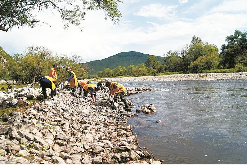 白城工務段組織職工對白阿線重點防洪地段的河道護岸進行加固,確保汛期行車安全。