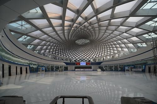 8月8日,由中鐵建工集團(tuán)承建的全地下高鐵站——于家堡高鐵站竣工。京津城際鐵路延伸線自北京南站始發(fā)過天津站,再途經(jīng)原有津山線至塘沽站后穿入地下到達(dá)濱海新區(qū)于家堡車站。于家堡站站房的“貝殼”型大跨度穹頂,南北向長143.9米,東西寬度80.9米,最高點(diǎn)離地面25.8米,是目前世界最大、最深的全地下高鐵站。其貝殼式穹頂采用了鋼結(jié)構(gòu)和膜結(jié)構(gòu)相結(jié)合的設(shè)計理念,使得旅客在站內(nèi)可以享受到360度的視角。