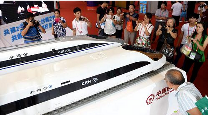 觀眾參觀和諧號動車模型。攝影:新華社記者 劉廣銘