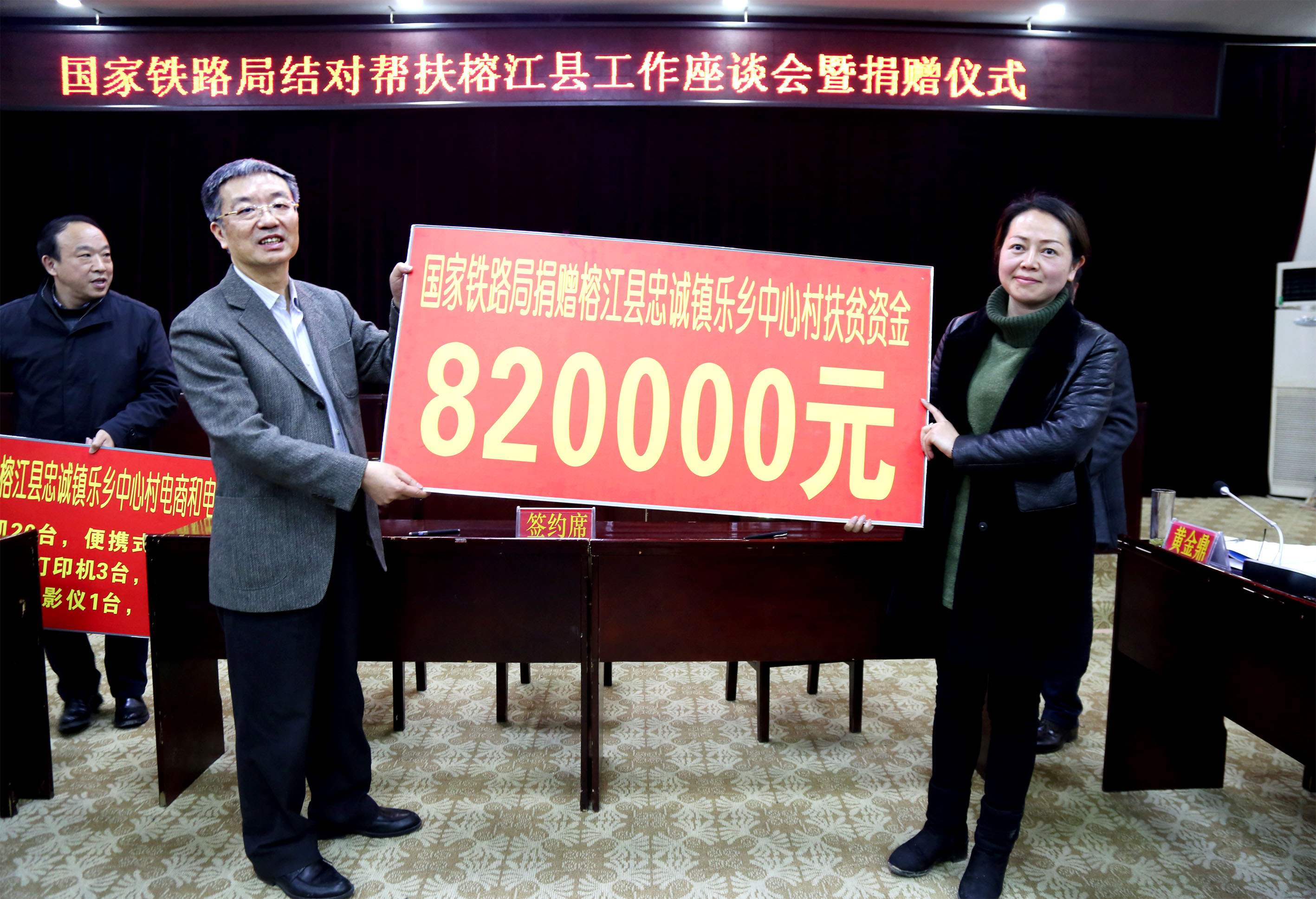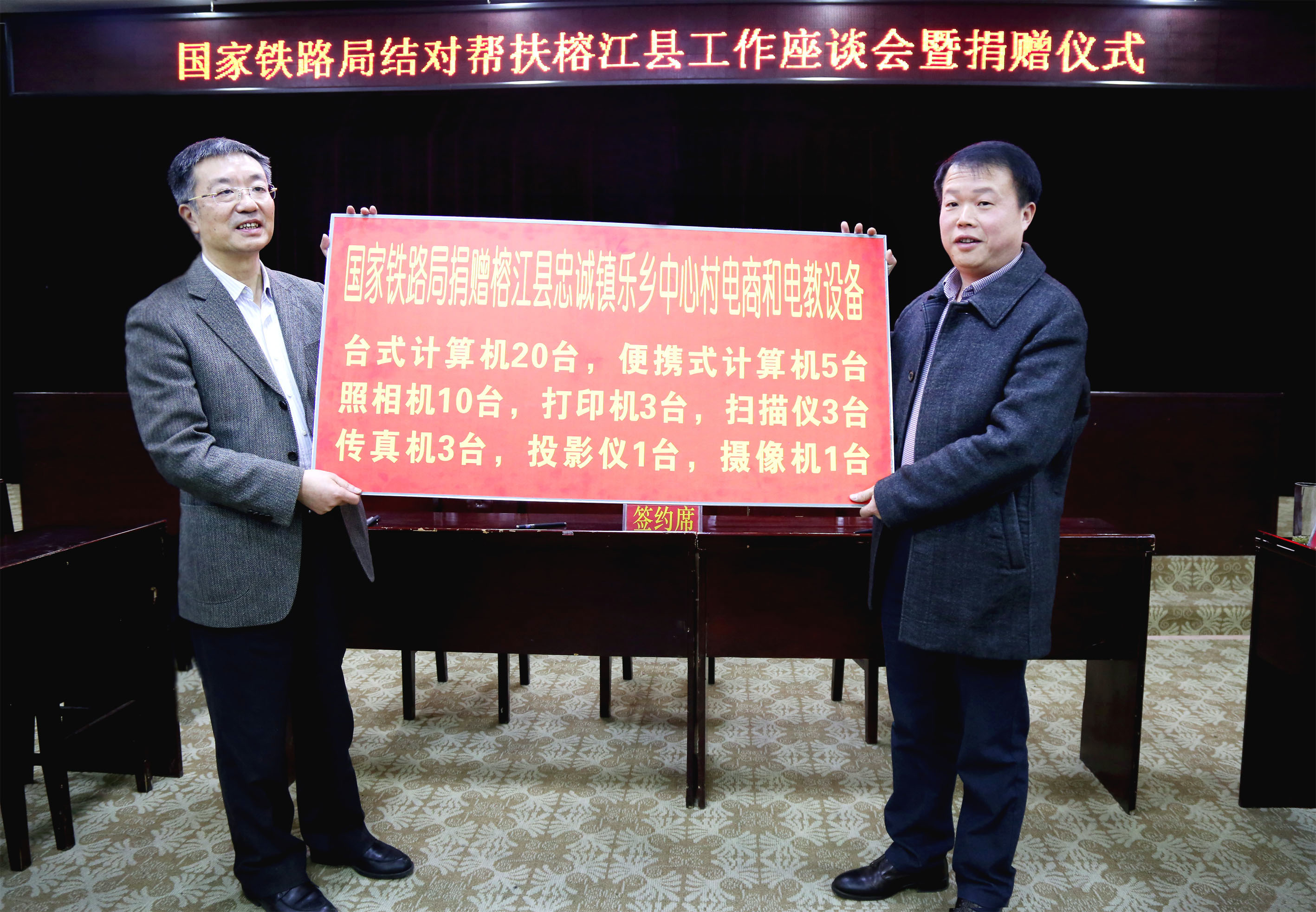 國家鐵路局捐贈樂鄉中心村電商、電教設備和扶貧資金儀式。