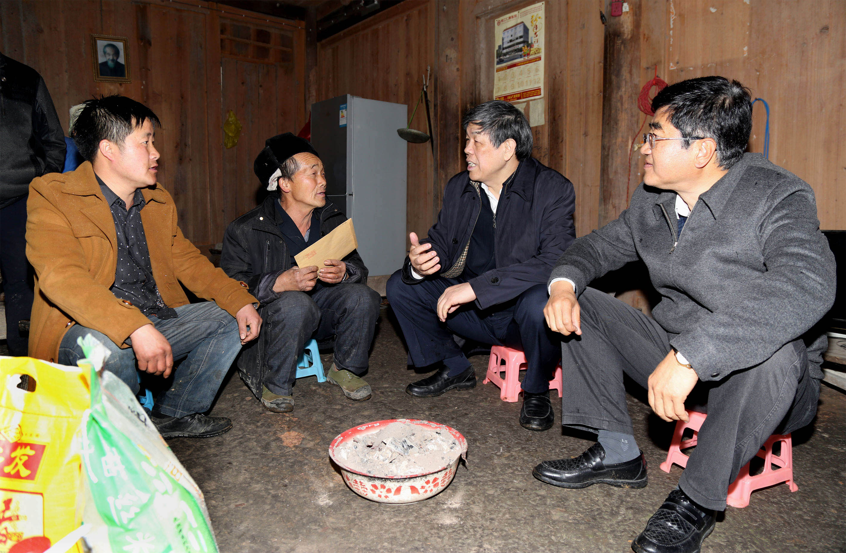 陸東福與貴州省領導慰問高扒村困難群眾石喜江一家。