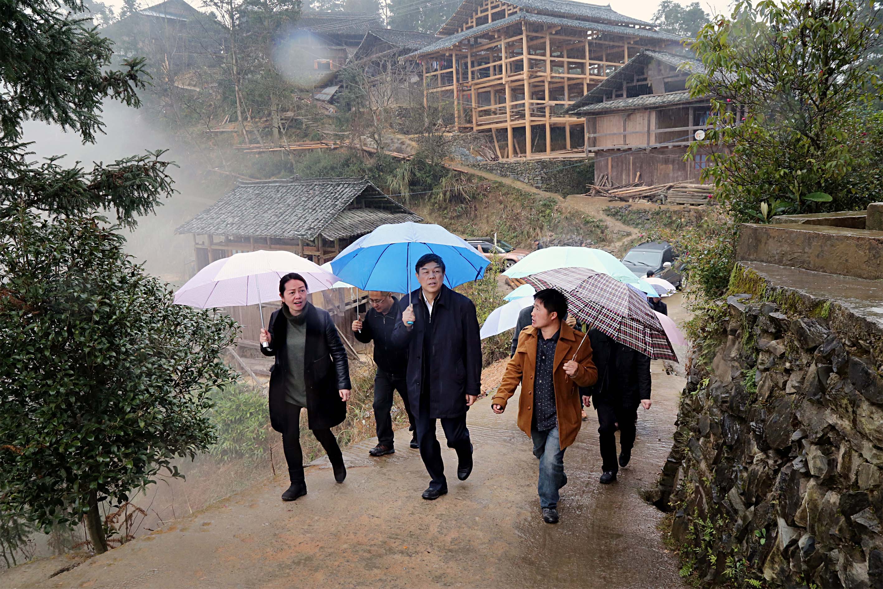 2月23日至26日,國家鐵路局黨組書記、局長陸東福帶隊,黨組成員鐘華、科法司、人事司、直屬機關黨委、信息中心等部門派員參加,會同交通運輸部扶貧辦、中鐵二院相關負責同志到貴州省榕江縣調研定點扶貧工作。圖為陸東福帶隊赴高扒村調研。