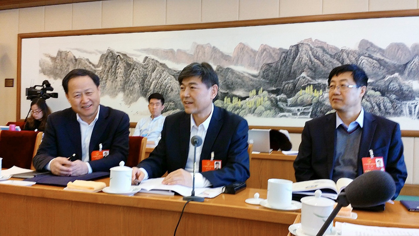 全國人大代表、國家鐵路局上海鐵路監(jiān)督管理局局長唐士晟在參加第十二屆全國人民代表大會第四次會議期間,認(rèn)真學(xué)習(xí)、審議李克強(qiáng)總理所作政府工作報告。圍繞推動新疆物流業(yè)轉(zhuǎn)型升級,充分發(fā)揮新疆在推進(jìn)“一帶一路”建設(shè)中的核心區(qū)作用,向大會提交了“對新疆物流業(yè)發(fā)展給予特殊政策扶持,以促進(jìn)新疆經(jīng)濟(jì)更快發(fā)展”的建議。圖為全國人大代表、上海鐵路監(jiān)督管理局局長唐士晟(中)參加新疆代表團(tuán)審議《政府工作報告》。