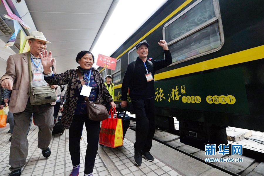為滿足百姓日益增長的春游出行需求,各地鐵路部門結合地域特點競相推出賞花游、入閩游、入疆游等多趟前往旅游城市、景點的旅客列車。圖為旅客乘坐蘭州鐵路局首趟“絲路快車”旅游專列始發。(圖片來源:新華網)