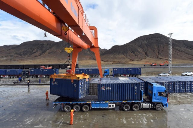 南亞公鐵聯運國際貨運列車在日喀則轉運