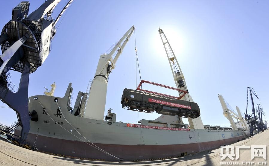5月19日,我國內(nèi)燃機車出口最大訂單的首批機車,在大連灣碼頭裝船啟運。兩臺機車將穿越南海和印度洋,沿著通往非洲的“21世紀海上絲綢之路”完成首航南非之旅,計劃6月下旬抵達南非德班港。2014年,中車大連機車車輛有限公司與南非國有運輸集團簽訂了232臺、總額約9億美元的內(nèi)燃機車供貨合同,是我國內(nèi)燃機車出口海外最大的單筆訂單。