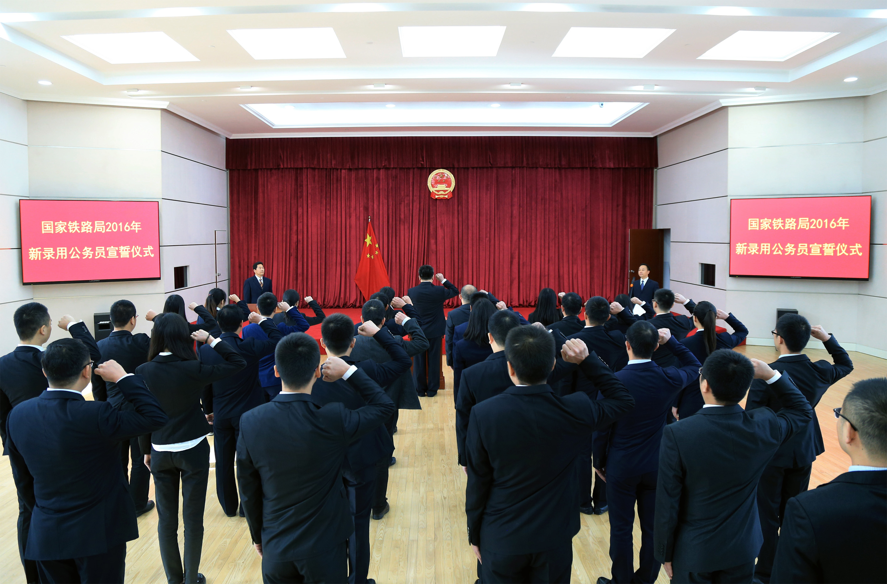 10月28日上午,國家鐵路局在局機關舉行2016年新錄用公務員憲法宣誓儀式,今年以來國家鐵路局新錄用公務員共33人依法進行憲法宣誓。