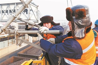 中國最北高鐵——哈齊高鐵即將迎來它的第二個春運,哈爾濱工務段職工在極寒的條件下檢修作業(yè),確保設備安全。胡艷波 攝