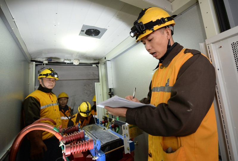 工作人員在寶蘭高鐵陜西段晁峪隧道對(duì)變電所設(shè)備進(jìn)行試驗(yàn)。