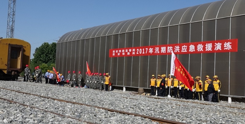近日,西安鐵路監管局聯合西安鐵路局在臨潼救援基地開展汛期鐵路交通事故應急救援和調查演練,西安鐵路局10個處室和西安地區12家單位參加演練。圖為應急演練現場。