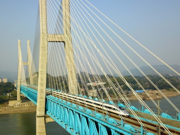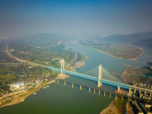 世界首座雙層六線鋼桁梁鐵路斜拉橋在渝落成