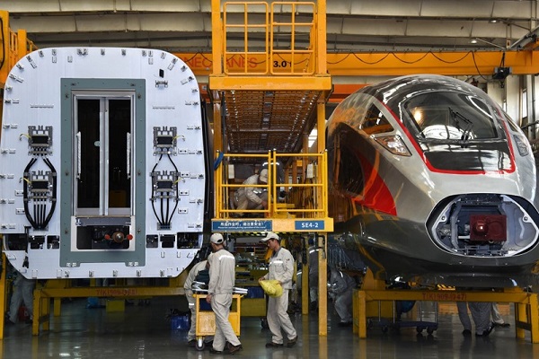 2018年5月10日,“復興號”動車組在總裝生產線上裝配。