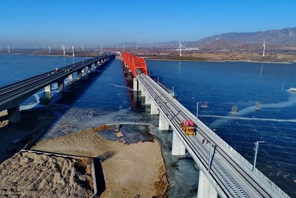 1月13日,京張高鐵官?gòu)d水庫(kù)特大橋鋪軌工作完成。京張高鐵全長(zhǎng)174公里,是2022年北京冬奧會(huì)的重要交通保障線。