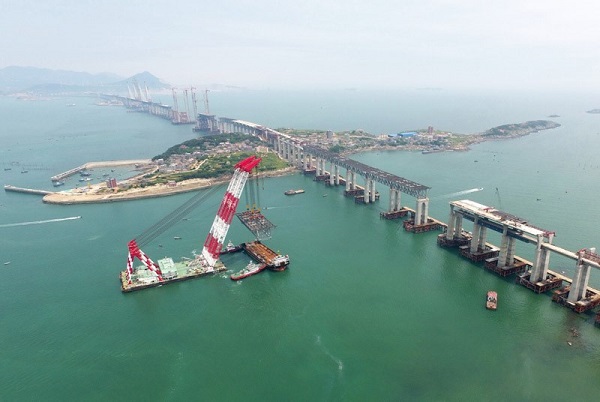 平潭海峽公鐵兩用大橋全橋非通航孔鋼桁梁全部架設完成